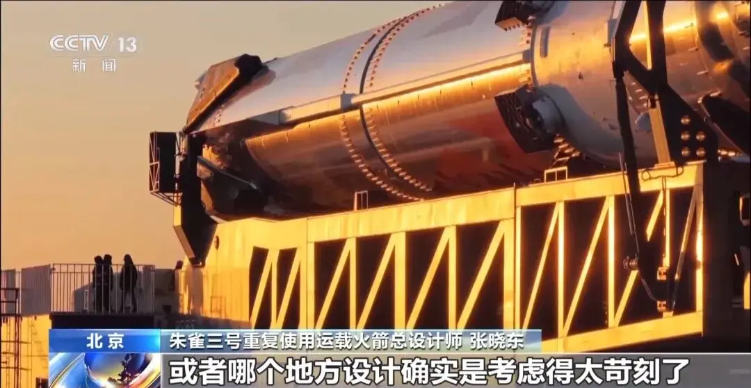 朱雀三号重复使用火箭总设计师 张晓东:数据是非常重要的,我们知道了原来哪些地方留的余量过多了,哪些地方设计考虑的还不到位。这个是重复使用火箭的一个优势,这次飞完了之后,下次遥二遥三,我们继续要做重复使用的飞行,回来之后,除了进一步的丰富数据库,我们还可以实地看哪些地方被烧了,或者哪个地方设计考虑得太苛刻了,那我们去减重、去优化,来提高火箭的性能。